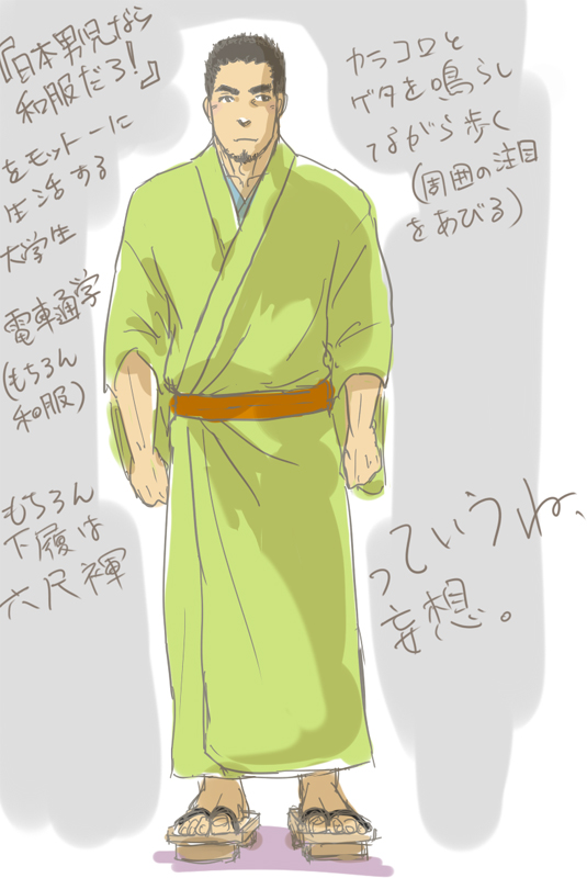 キャンパスライフを和服で送る大学生とかなかなか居ないよなーっていうかむしろ自分が和服&下駄で過ごしたかったって言うだけなんですけどね。妄想代打。