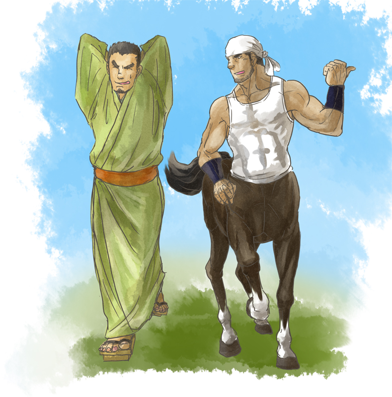 この前描いた大学生と大工のケンタウロス