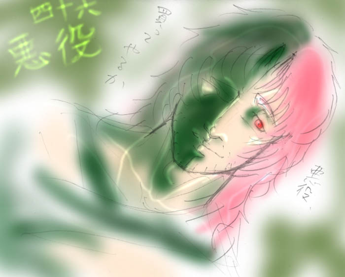 彼の絵は全体的に深緑をベースにしてるようなんで、意識して深緑を使ってみた。使い方が違うだろうけど、まあキニシナイ。